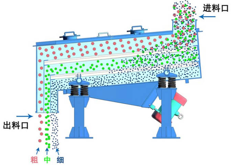 直线振动筛:结构以筛箱为主体,内置单层或多层筛网。其核心动力来自两台同步反向旋转的振动电机,产生直线激振力。设备通过减振弹簧支撑于底座,以隔离振动。结构坚固,适合大产量连续作业。