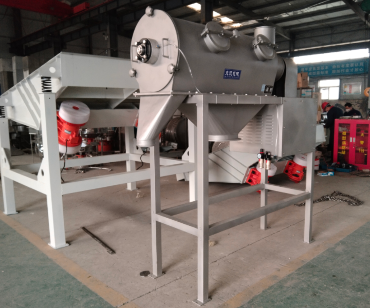 灵芝粉在整个生产过程中离不开气旋筛分机,灵芝粉置于 WQS30-100气旋筛机体内,物料通过螺旋输送系统后,和气流混合、雾化进入网筒内;通过网筒内风轮叶片使物料同时受离心力和旋风推进力,从而近使物料喷射过网,由细料排出口排出,不能过网的物料沿网筒壁从粗料排出口排出。