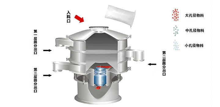 在面粉筛分过程中,使用的不锈钢振动筛分机主要由筛盖、筛框、网架、振动电机、底框和减振弹簧组成。筛盖顶部有进料口,锥形的设计能引导物料均匀落到筛面上,避免物料集中冲击筛网。网架采用子母式结构,母网起到强力支撑作用,细网紧绷在母网上,能防止筛网松动、破损,而且更换起来很方便。振动电机是设备的动力来源,通过调节上下偏心重锤的角度,就能控制物料在筛面上的散开和聚集轨迹。弹跳球作为清网装置,在筛网下方高频弹跳撞击筛网,能解决面粉容易吸附在筛网上导致的堵网问题。